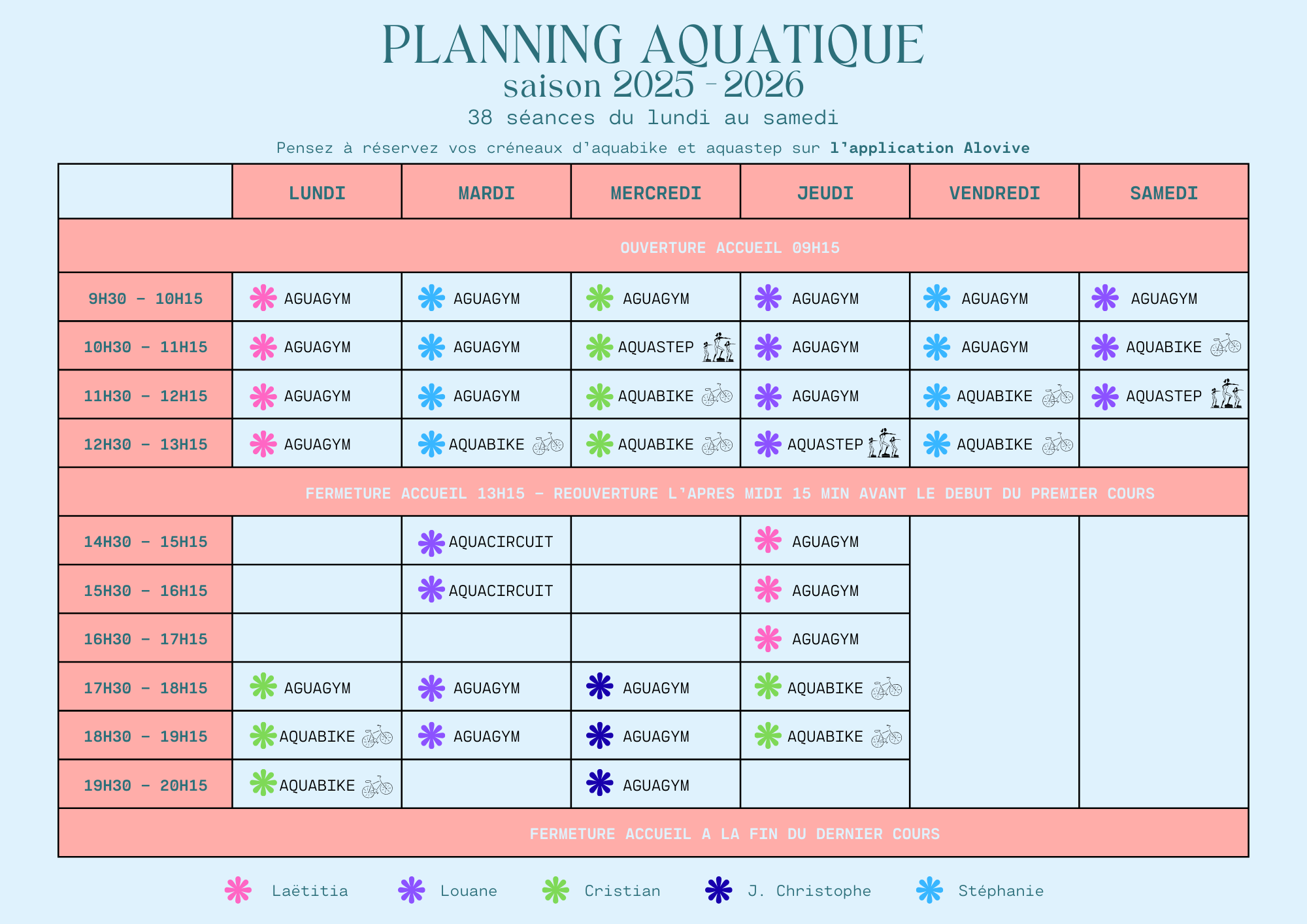 De l’Aquagym et de l’Aquabike à des pratiques apaisantes comme le Pilates et le Yoga, en passant par le Qi Gong, la gym douce, le fitness, et la Zumba, trouvez la formule idéale pour votre parcours de bien-être.